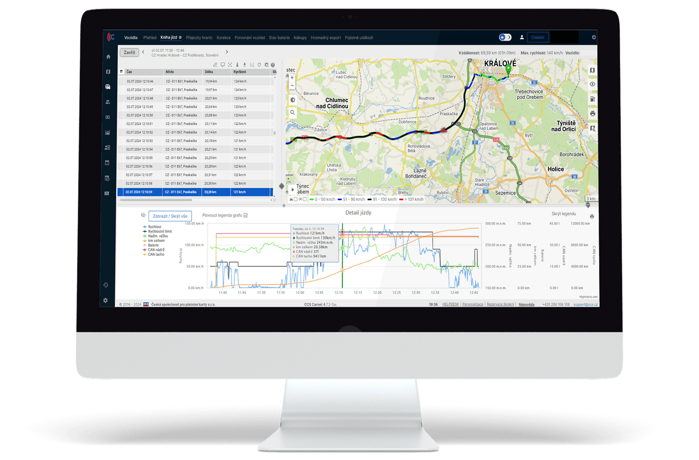 Informácie o aktuálnej polohe vozidiel dostávate na interaktívnej mape takmer v reálnom čase. To pomáha lepšie rozvrhovať jazdy aj prácu. S CCS Carnet máte firemné vozy pod kontrolou vždy a všade, z počítača, tabletu aj mobilu. Operatívne tak môžete riešiť jednotlivé úkony ako napríklad schválenie knihy jázd.